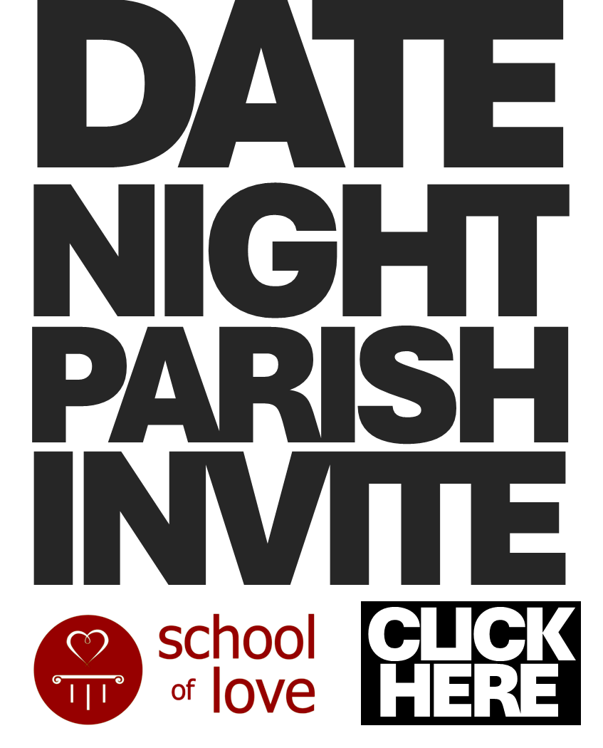 Want to spread the word about Date Night? Great! Thanks! We’ve made inviting others easy for you to do with a selection of ready-made PDF invites containing info about the next Date Night event. Click on the options below, link or download the invite, & then send to the recipient(s) of your choice. First (& most important) there’s an invite for you to send to your spouse, but there’s also invites for sending to your friends, group or ministry, and parish.